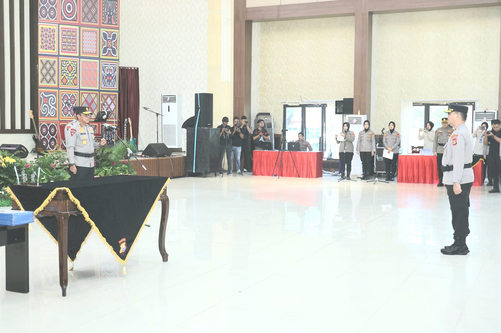 INTELEKTUALIS.com—Kapolda Sulawesi Selatan Irjen Pol Andi Rian R Djajadi, S.I.K., M.H. didampingi Ketua Bhayangkari Daerah Sulsel Ny. Dewwy Andi Rian Memimpin Langsung Serah Terima Jabatan dan Kenal Pamit Pejabat Utama dan Kapolres Jajaran Polda Sulsel di Aula Mappaodang Polda Sulsel, Senin (08/07/24).