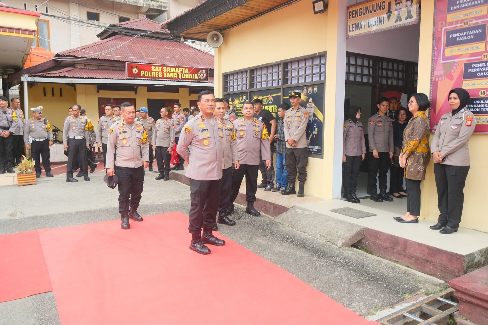 Kunjungan ini disambut langsung oleh Kapolres Tana Toraja AKBP Malpa Malacoppo, S.H., S.I.K., M.I.K., beserta jajaran dengan prosesi pengalungan bunga dan jajar kehormatan. Acara ini turut dihadiri oleh Para Pejabat Utama (PJU) Polres Tana Toraja dan Forkopimda Kabupaten Tana Toraja.