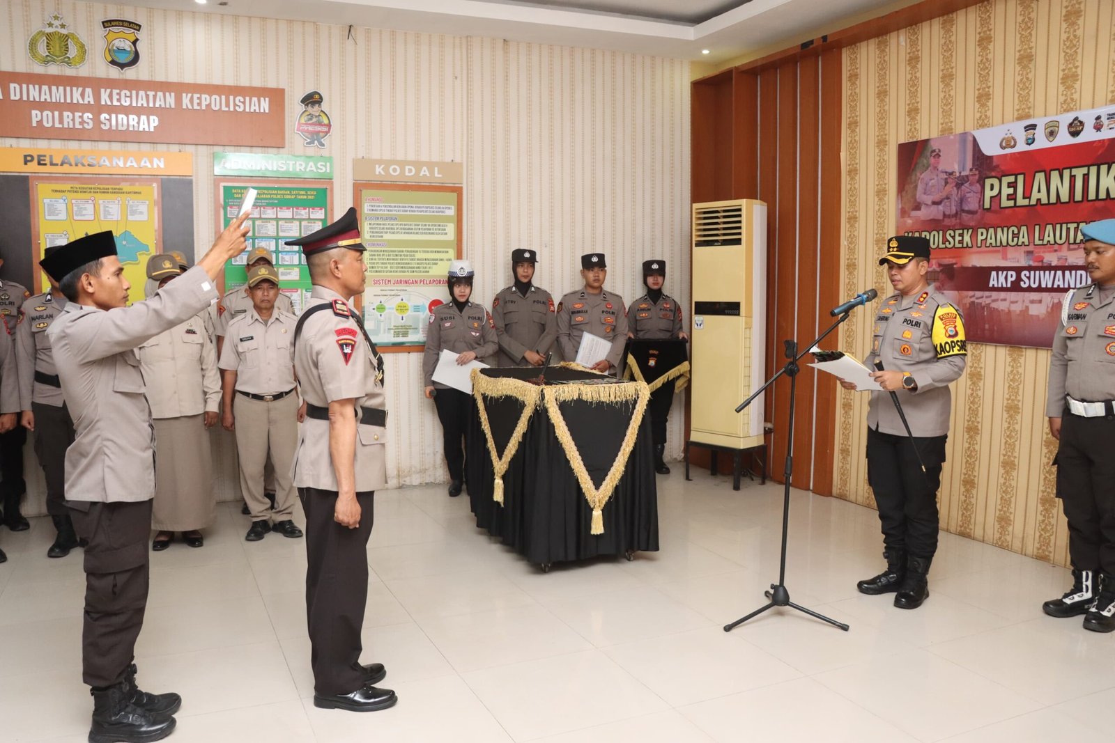 INTELEKTUALIS.Com—SIDRAP, Kepala Kepolisian Resor (Kapolres) Sidrap AKBP Dr. Fantry Taherong, S.H., S.I.K., M.H. memimpin upacara serah terima jabatan (sertijab) dan pelantikan Kepala Kepolisian Sektor (Kapolsek) Panca Lautang di Aula Mapolres Sidrap, pada hari ini.