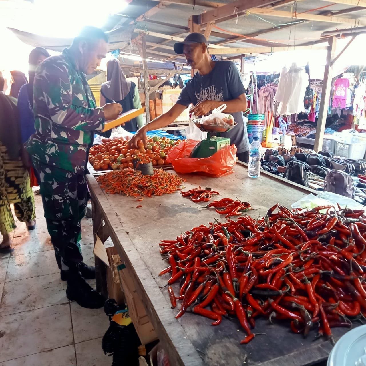 Batituud Koramil 1420-01/Panca Lautang Peltu Kisman. B menjelaskan bahwa kegiatan ini bukan hanya fokus pada keamanan, tetapi juga pada pemantauan perkembangan harga bahan pokok. “Peran Babinsa sangat penting dalam memantau stabilitas harga bahan pokok di pasar,” ujarnya.