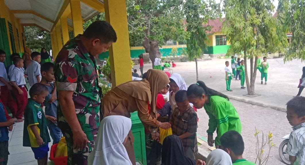 Babinsa Dandim 1420 Sidrap Awasi MBG DI SD 16 Pangkajene Dan SD 5 Arawa
