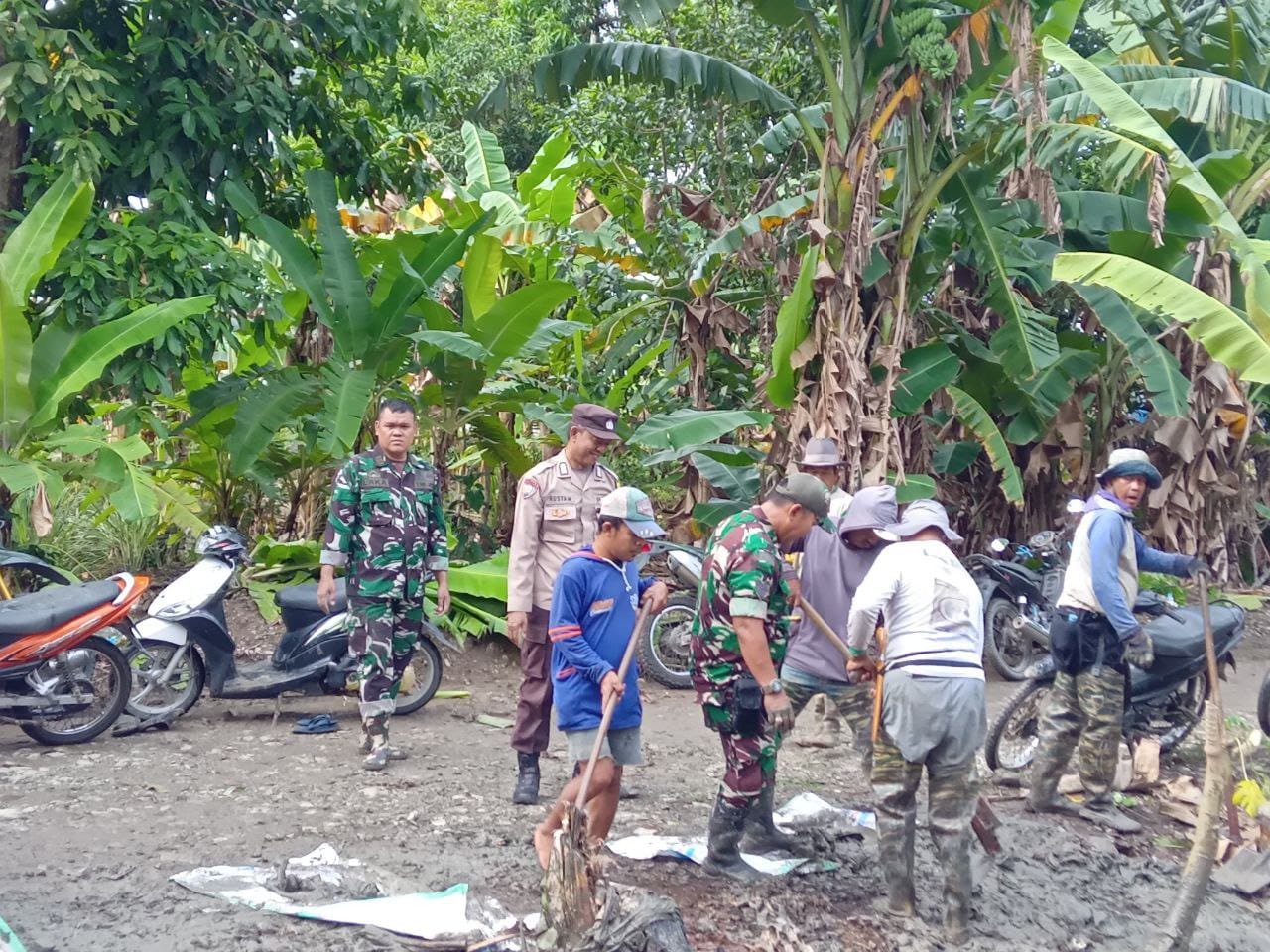 Sekitar 40 warga turun tangan bersama TNI, Polri, dan pemerintah setempat dalam aksi gotong royong yang penuh semangat.