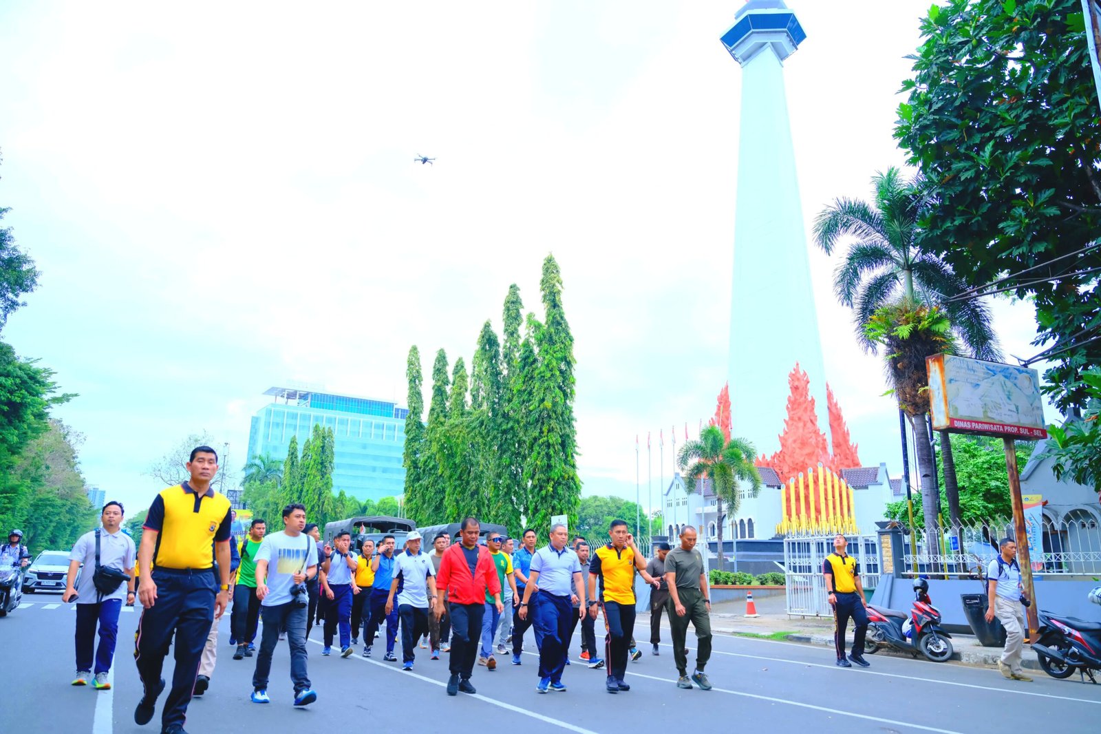 “Dengan olahraga bersama ini, tubuh kita menjadi sehat, dan kesehatan itu menjadi modal produktivitas dalam bekerja,” ujar Irjen Rusdi Hartono.