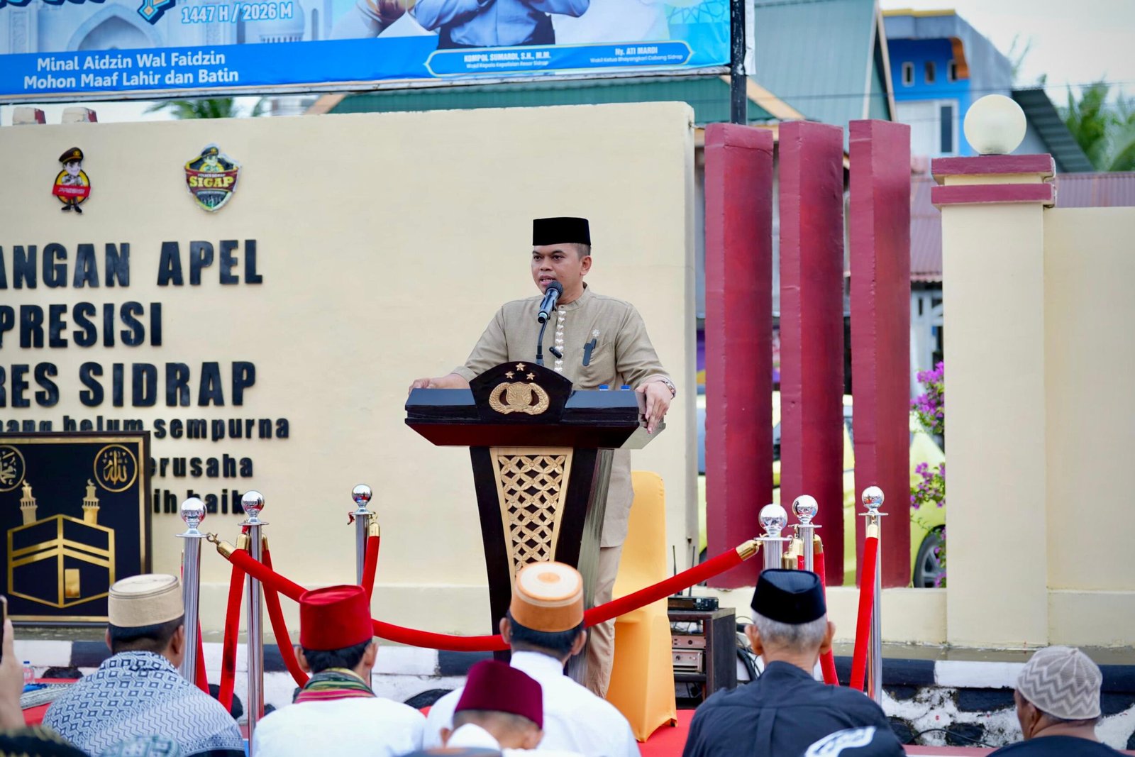 Salat Idul fitri tersebut dihadiri dari berbagai kalangan baik personel Polres maupun warga sekitar Polres Sidrap. Sebelum pelaksanaan salat dimulai terlebih dahulu Kapolres Sidrap Akbp Fantry Taherong membacakan sambutan seragam Bupati Sidrap